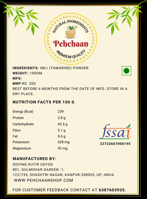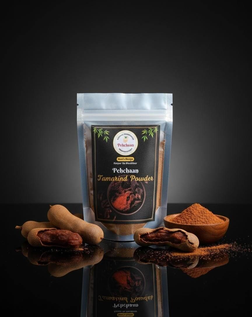Tamarind (Imli) Powder aslo known as Imli Powder/Imbli Powder/Chincha Powder/Ambli Powder/Tetul Guro/Puli Podi/Chinthapandu Podi/Hunasehannu Pudi/Imli ko Powder. Pehchaan’s Tamarind Powder is made from fully ripe tamarind fruit that is deseeded, dried, and ground into a tangy brown powder. It captures the sweet‑sour flavor of tamarind pulp and is a convenient way to add natural tartness to chutneys, sauces, drinks, and marinades. Rich in tartaric and malic acids, the powder dissolves in water to form a refreshing tangy drink or can be added directly to dishes. In traditional use, Tamarind is known as a digestive aid and is used to season savory snacks and drinks. The powder is pure tamarind, free of preservatives or added sugars.